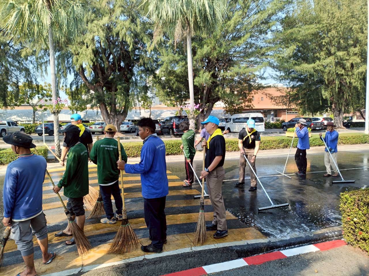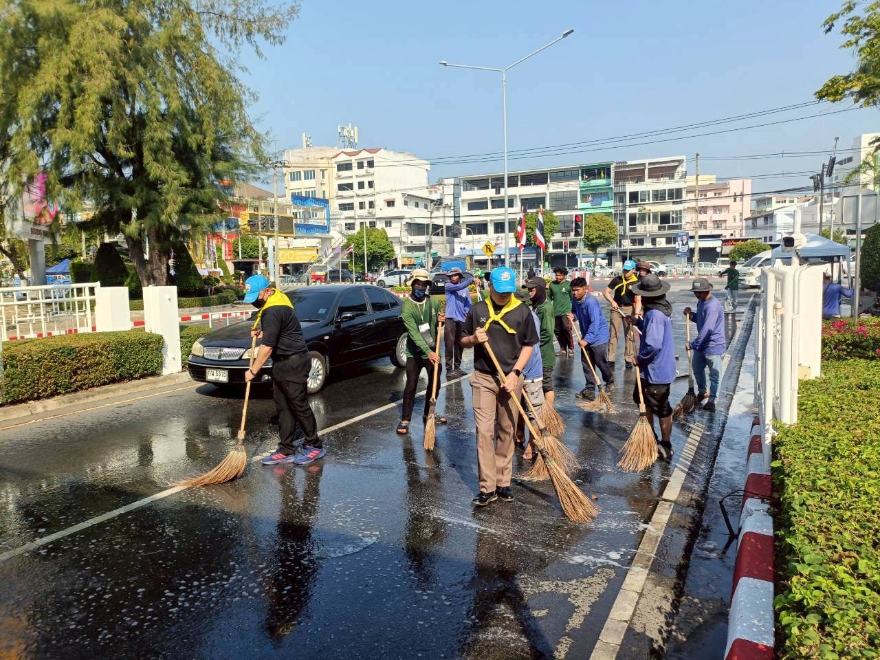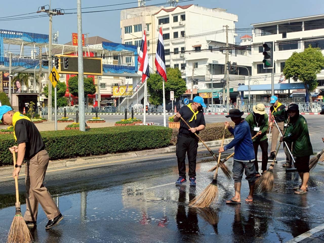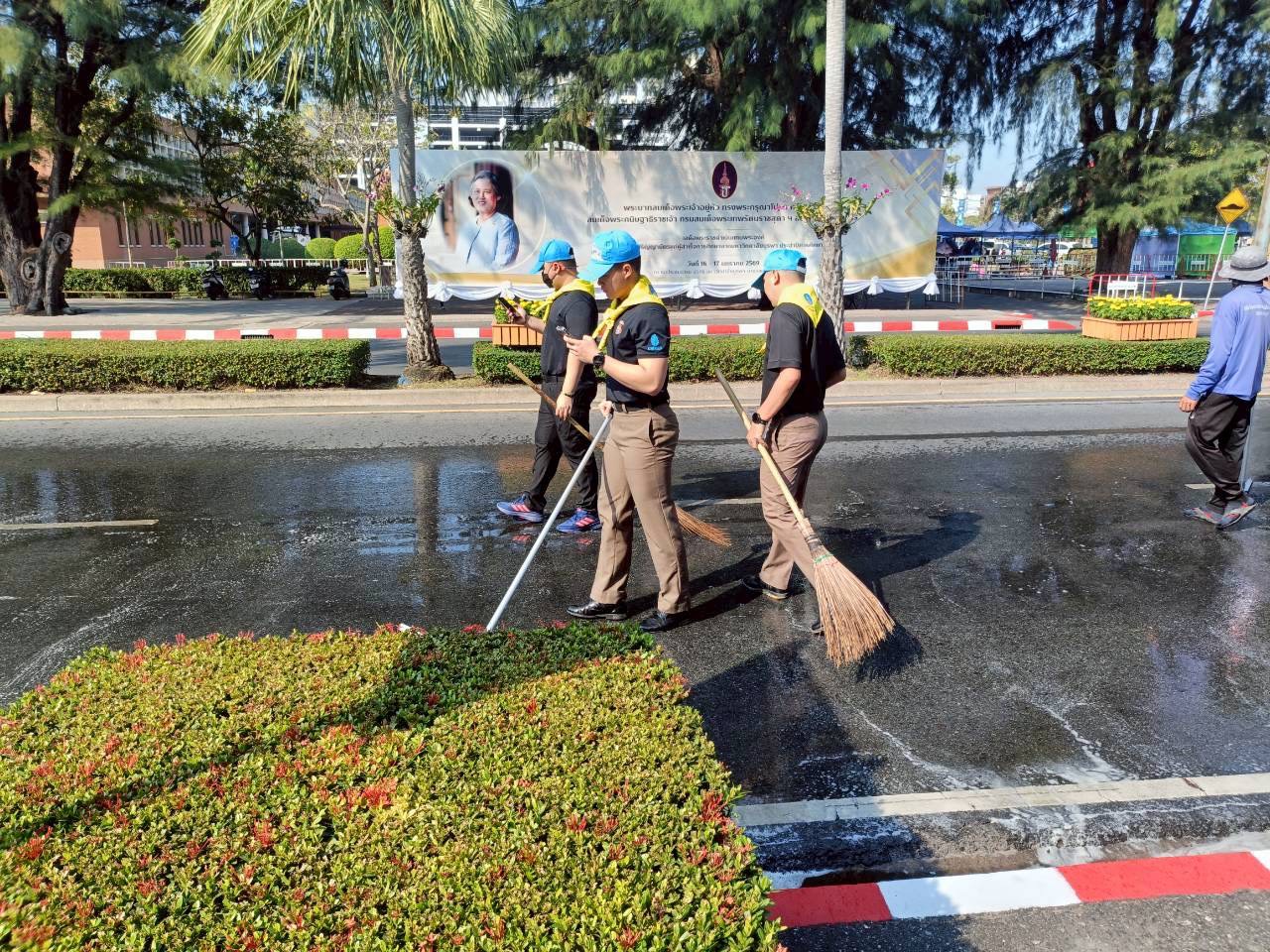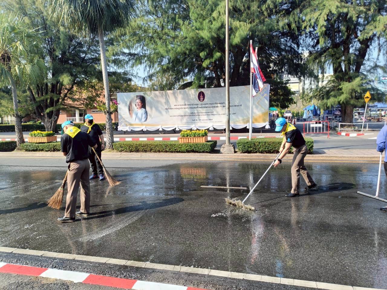 -ทำความสะอาดจิตอาสา ล้างถนนเตรียมพร้อมเส้นทางรับเสด็จฯ